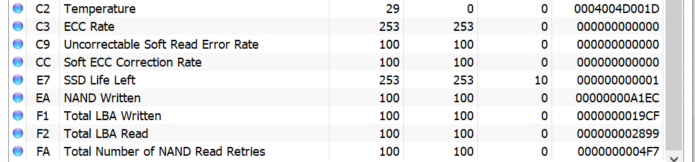 참고로 위 값들은 표시방법이나 항목이 SSD 제조사마다 차이가 있을 수 있다.