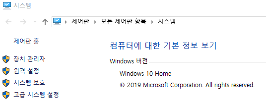 윈도우키+Pause 키를 동시에 누른다.